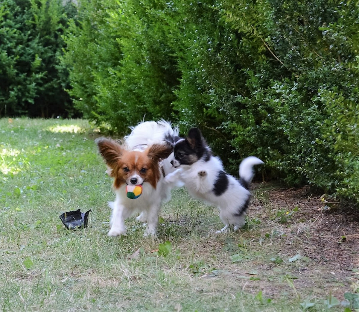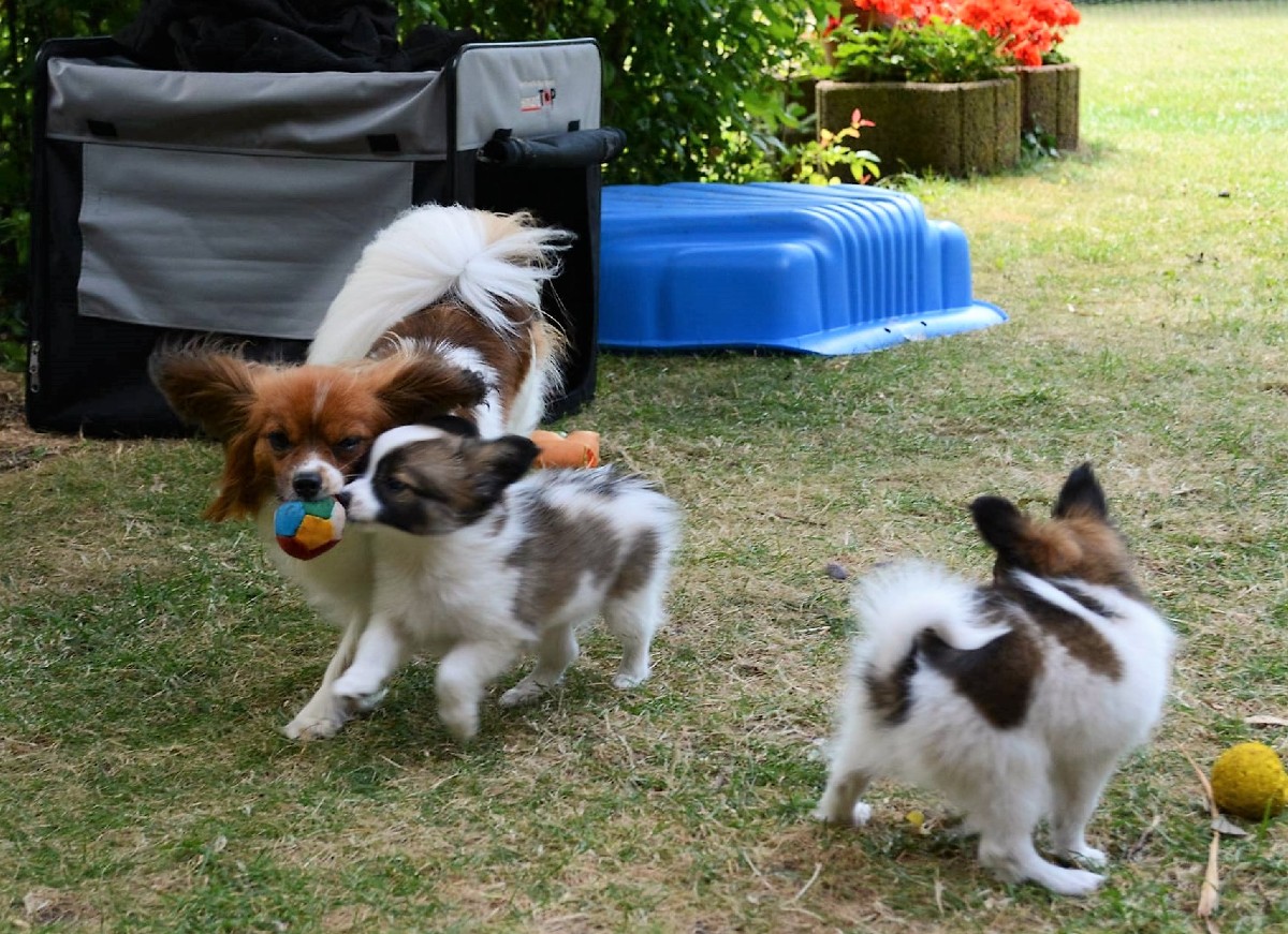 | Die elfte Woche mit ZwergenZum letzten Mal alle Welpen mit Mutti Ruby auf einem Bild. Die große Schwester Miley machte Babysitting als Gasterzieherin "Hei Kinder, schön aufpassen und mitmachen!"